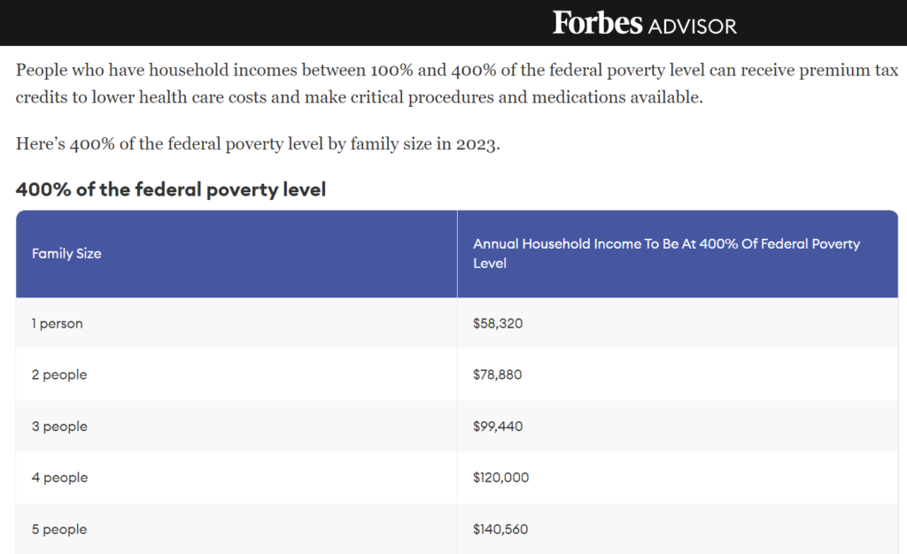 – Gives people discounts on health insurance based on how much money they make and how big their family is